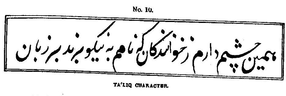 Allah, "God," and it would therefore be considered irreverential towards the Deity to write it beneath the other Letters. As a feature common to this division of the Eastern Arabic manuscript style, we lastly point out the inclination of the characters from the left to the right, in contradistinction both to
