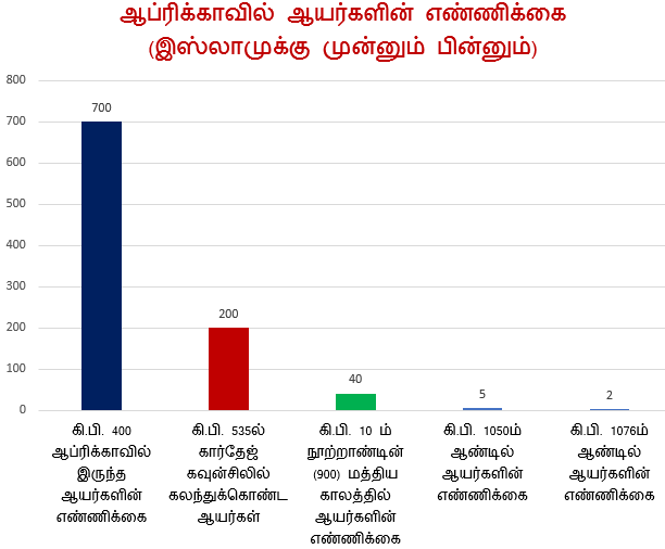 வரைபடம் (Bar Chart): ஆப்ரிக்காவில் ஆயர்களின் எண்ணிக்கை - இஸ்லாமுக்கு முன்னும் பின்னும்