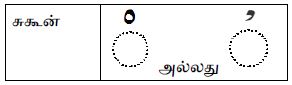 4) இப்பாடத்தில் கற்றுக்கொண்ட நான்கு எழுத்துக்களின் மூன்று இடச்சூழல்களை எழுதிக் காட்டவும்.