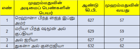 மூலம்: wikiislam.net/wiki/List_of_Muhammads_Wives_and_Concubines